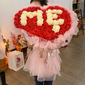 Bó hoa sáp chữ VỢ 100 hoa – Quà Tặng Vợ đẳng cấp, tươi mãi không tàn HF019