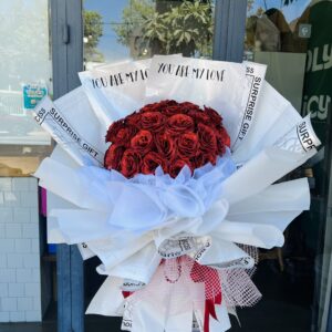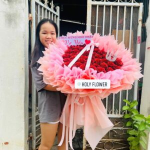 HS08 Bó hoa hồng đỏ trái tim kiểu gói công chúa