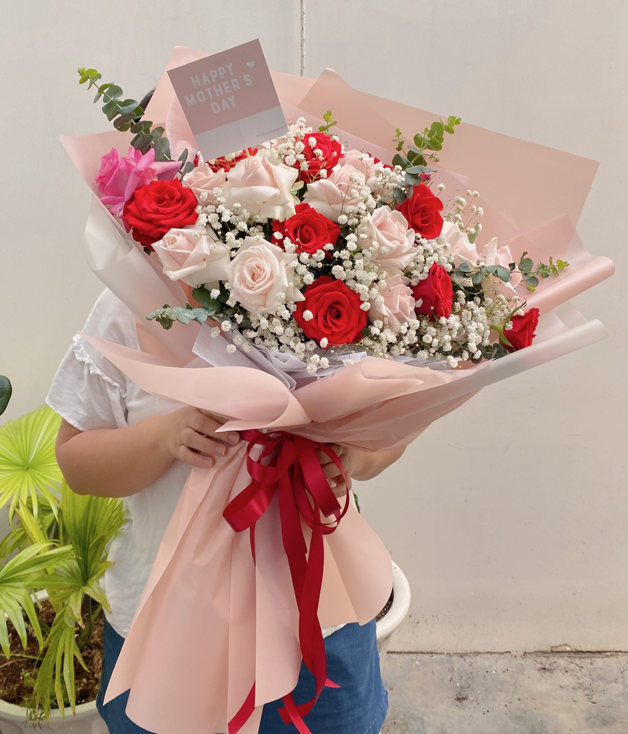 BÓ HOA HỒNG: Hồng đỏ, hồng kem, hoa babi, mix lá