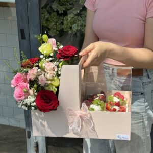 BK09 Box hoa tươi và bánh panna cotta tặng sinh nhật siêu cute