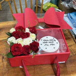 Hộp hoa tươi và bánh Kem NƠ ĐỎ HOT TREND BK35